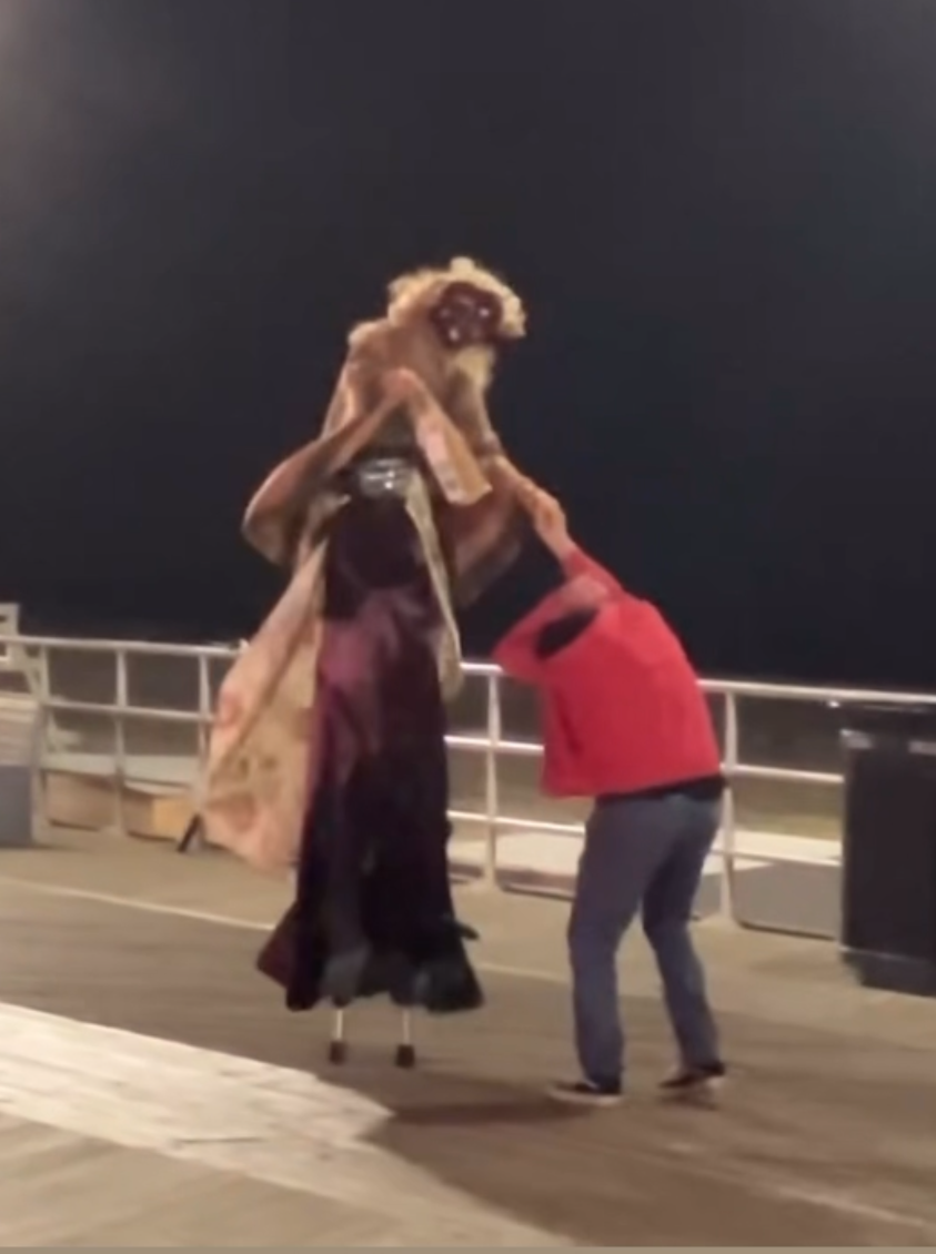 Aunty Autumn dancing with a boardwalk patron to celebrate the first day of fall, Asbury Park, NJ.