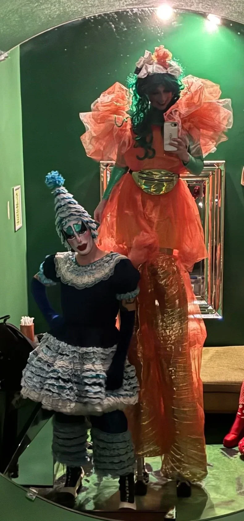Pumpkin Queen celebrating queer joy with Tilly The Clown through Out & Abt events at Elsewhere, Brooklyn, NY.